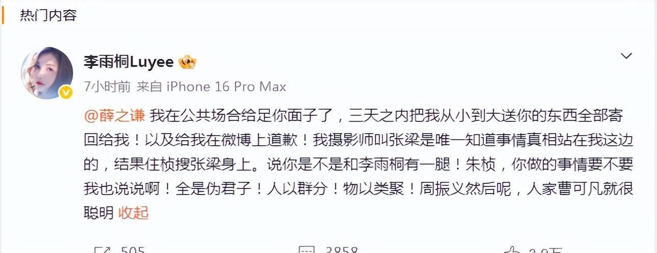 2025年12月,李雨桐直播称"与薛和解",帮其宣传新歌