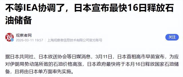 有人会问,日本为什么不等IEA协调?原因也不难猜。