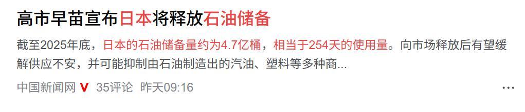 3月11日傍晚,日本首相高市早苗在首相官邸紧急见记者,抛出一个狠招,日本将最快在3月16日开始单独释放石油储备。